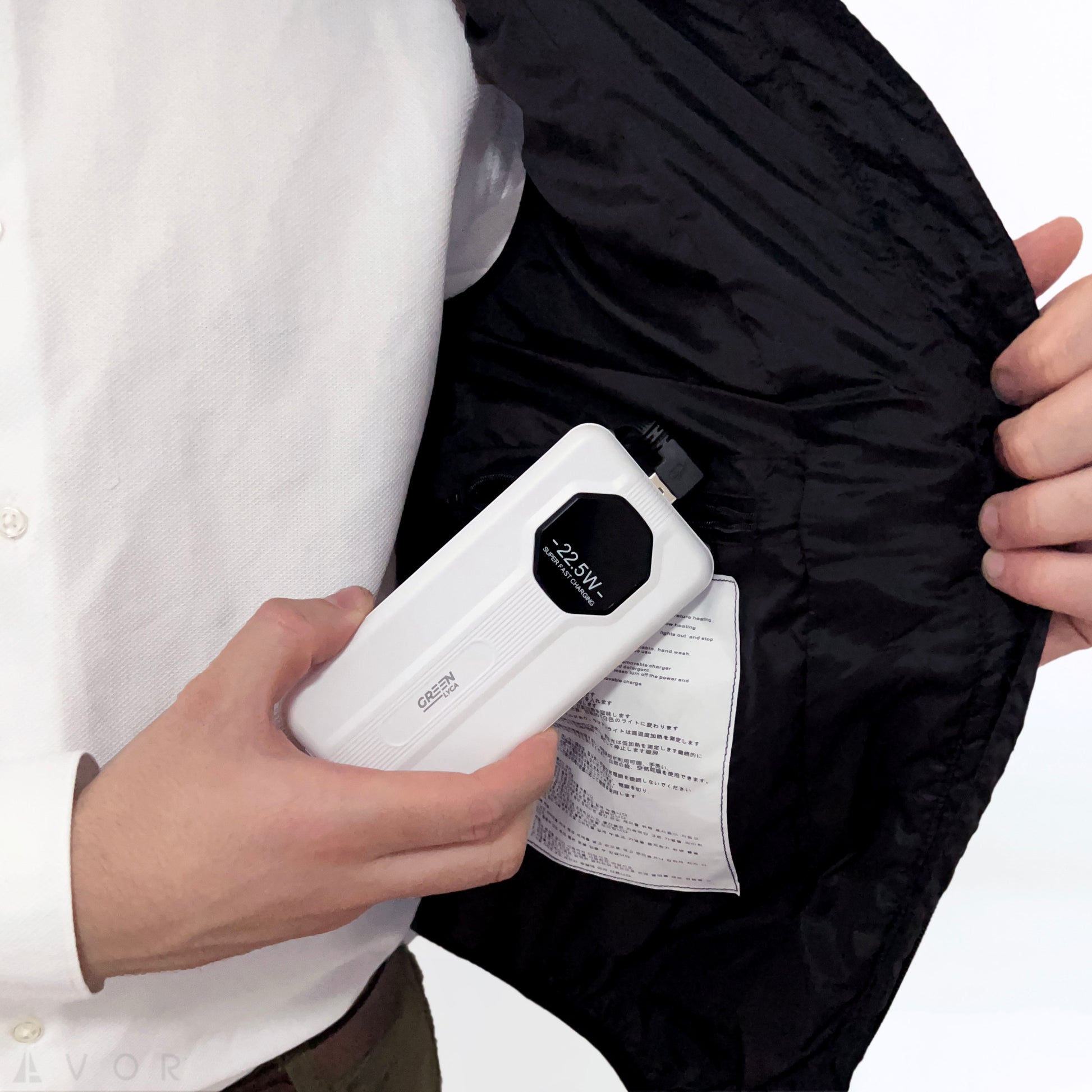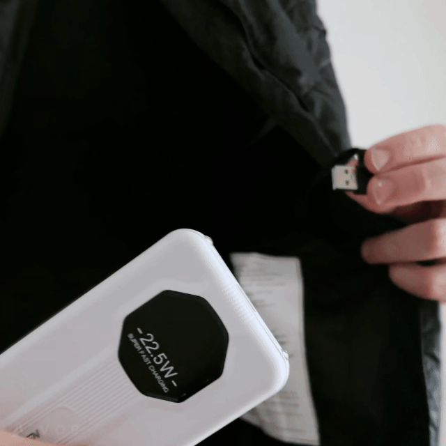 Cuenta con un amplio bolsillo interior en el que encontrarás la toma USB para conectar la batería portátil y disfrutar de horas de uso.